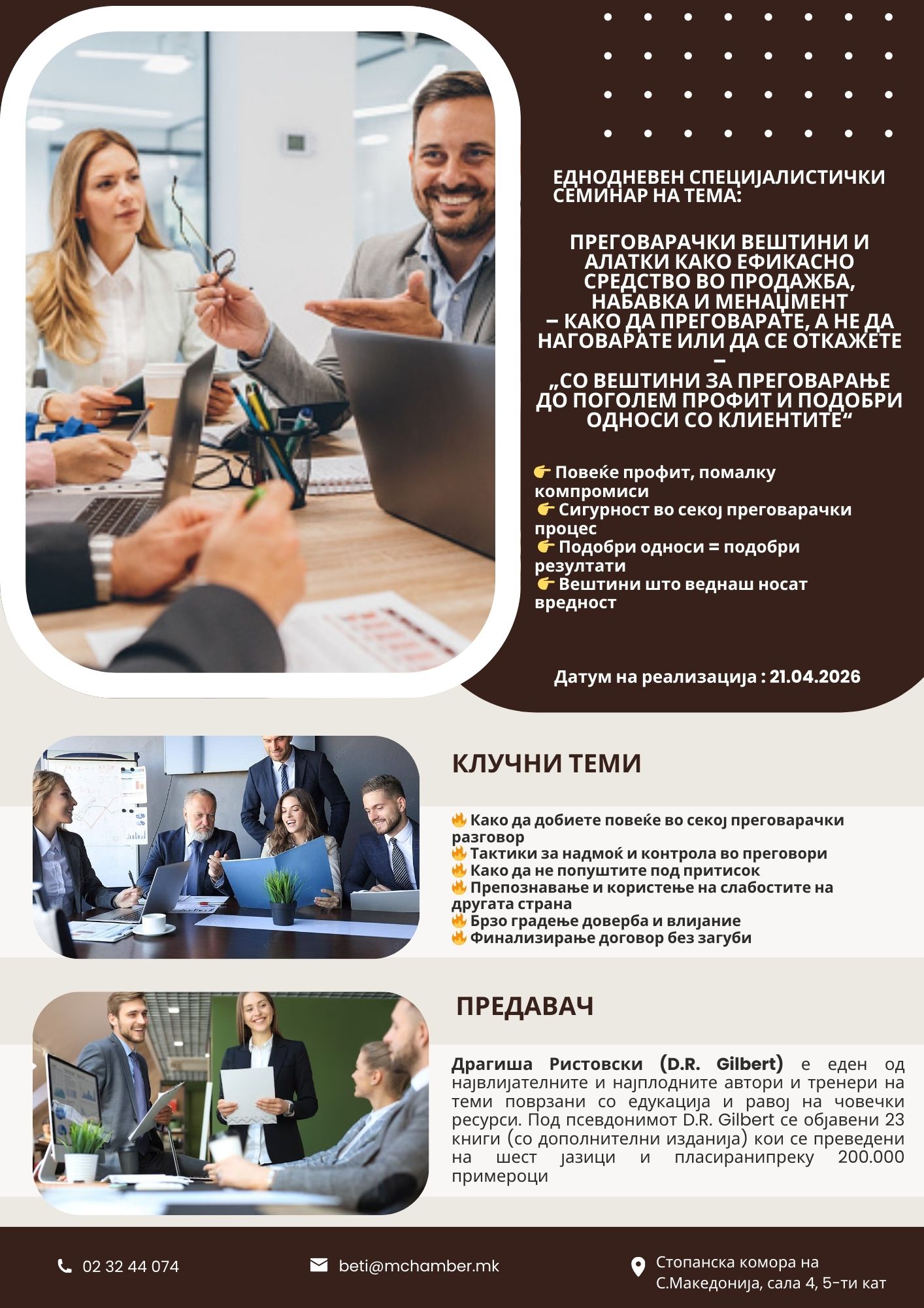 Со задоволство ве покануваме на традиционалните Меѓународен деловни средби „Connect2Slovenia“, кој ќе се одржи во четврток, 19 септември 2024 година, со почеток во 10.00 часот, во сината сала на саемот Целје, во Словенија. Настанот е организиран од словенечкиот конзорциум Enterprise Europe Network, во партнерство со Министерството за економија, туризам и спорт и Јавната агенција на Република Словенија за промоција на инвестиции, претприемништво и интернационализација и во соработка со Стопанската комора на Северна Македонија.