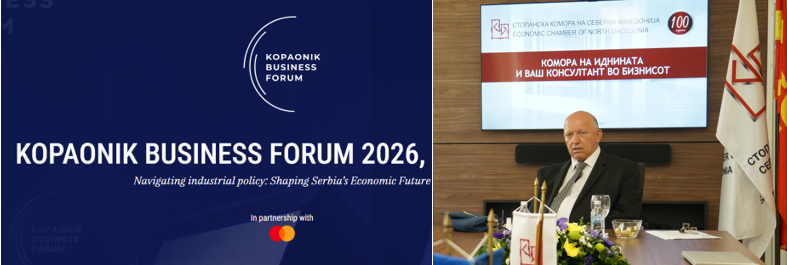 Претседателот на Стопанската Комора Бранко Азески, денеска (2 март 2026 година), е панелист на тема: ЗАЕДНО НАПРЕД: РЕГИОНАЛНА ИНТЕГРАЦИЈА НА ЗАПАДЕН БАЛКАН, со претседателот на Стопанска комора на Србија Марко Чадеж, проф. Дејан Микеревиќ, Економски факултет, Универзитет во Бања Лука, Горан Пекез, директор за корпоративни работи и комуникации за Западен Балкан, Давид Пиегазки, генерален секретар на Коморскиот инвестициски форум (КИФ) и Небојша Шапониќ, коосновач, НЕЛТ Груп. Со својата сериозна експертиза и активно учество, Азески ќе понуди и поттикне значаен дијалог за актуелни теми коишто ја обликуваат економската слика во регионот, во услови на големи неизвесности на глобален план.