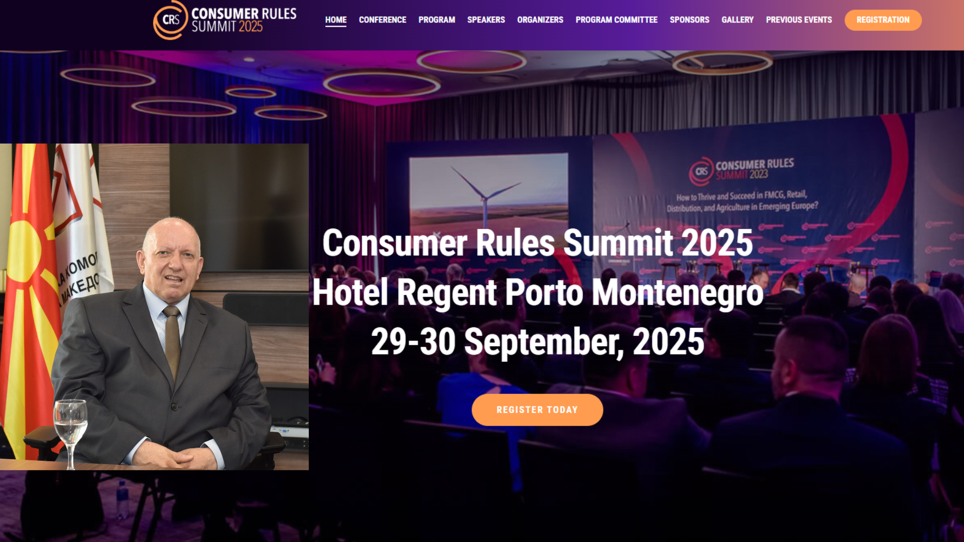 Самитот за правила на потрошувачите кој се одржува по трет пат, е единствена платформа за потикнување лидерство и соработка меѓу бизнисите. Тој промовира размена на идеи од реалниот свет и успешни приказни меѓу врвните бизнис лидери, инвеститори, регулатори и иноватори, за да поттикне значајна соработка и иновации. CRS 2025 собира повеќе од 30 говорници и над 150 учесници, вклучувајќи менаџери од C-ниво од водечки компании во Централна и Југоисточна Европа, како и од ЕУ, Турција, Блискиот Исток и Африка.