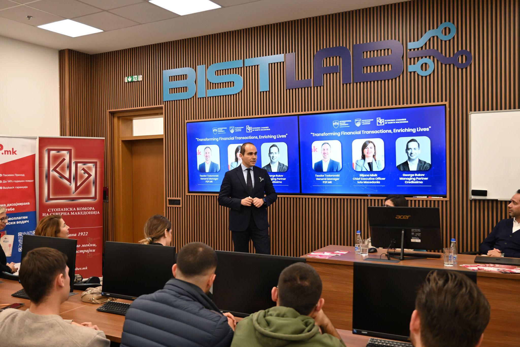 На 18 ноември студентите на Меѓународниот Балкански Универзитет (МБУ) присуствуваа на исклучително корисно предавање организирано во соработка со Групацијата за небанкарски финансиски друштва при Стопанската комора на Северна Македонија. Во просториите на BISTLAB – Лабораторијата за балканска економија и финансии, под мотото „Трансформирајќи ги финансиските трансакции ги збогатуваме нашите животи“, студентите имаа можност директно од експерти да слушнат како финтекот и најновите технологии го менуваат секојдневието и го прават пристапот до финансиски услуги побрз, поедноставен и поефикасен.