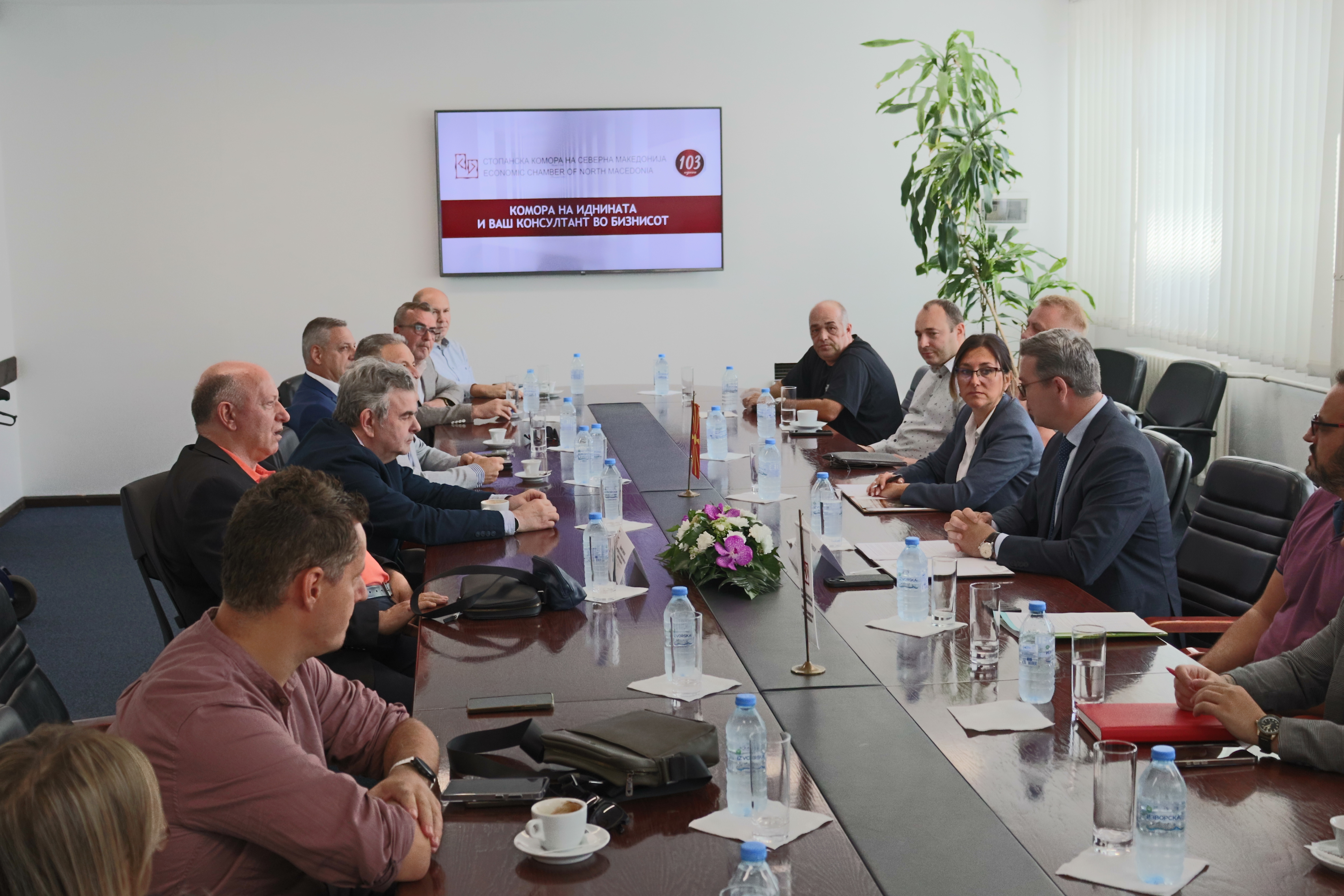 Today, at the Economic Chamber of N Macedonia, another working meeting was held between representatives of the business sector and the Ministry of Agriculture, Forestry and Water Economy, led by the Chamber’s President, Branko Azeski, and the Minister of Agriculture, Forestry and Water Economy, Cvetan Tripunov.
