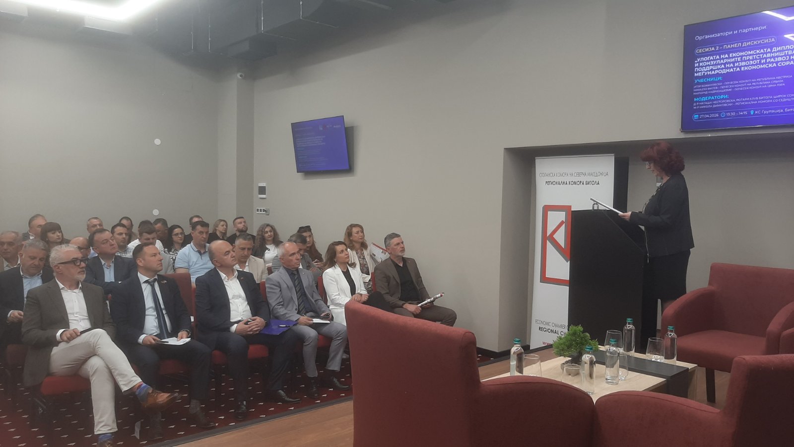 Во име на Регионалната комора со седиште во Битола, присутните ги поздрави и настанот го отвори, потпретседателот Олгица Стојчевска, која воедно е генерален директор на еден од најголемите производители и извозници во регионот, Свисслион Агроплод од Ресен.