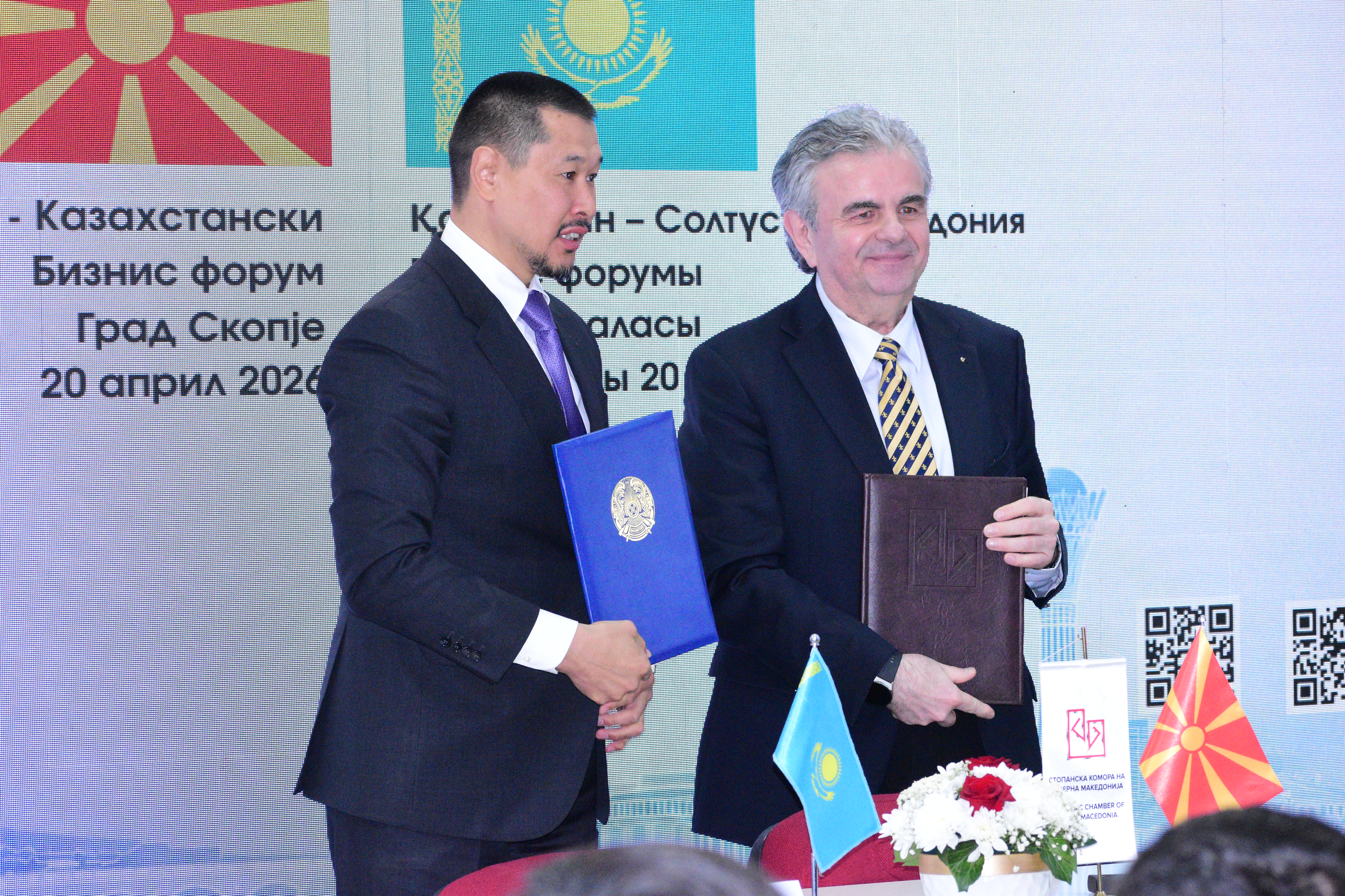 Б. Азески: Мала економија како македонската не може да смета на забрзан раст без поголемо присуство на компаниите на меѓународните пазари. Прашањето за поголем извоз за Македонија е да се биде или не. Поради тоа посветуваме многу внимание на подобрување на извозот. Стопанската комора е единствената институција која троши средства за анализи, која прави проекти и ги промовира можностите пред компаниите за зголемување на извозот. Ниедна друга институција во Македонија не посветува поголемо внимание на извозот. За ова имаме огромна поддршка од нашите партнери како што се УСАИД и Владата на Швајцарија. Ако останеме да произведуваме само за домашниот пазар не може да очекуваме побрз раст на економијата. Едноставно тоа што ќе го произведеме дома ќе нема кој да го потроши. Затоа постојано работиме на отворање на странските пазари и подобрување на конкурентноста на македонските производи. Во тој контекст нема да отстапиме од секоја иницијатива која ќе овозможи поголема трговска размена и oд регионалнатa соработка и која на македонските компании ќе им овозможи поголеми можности за извоз. Овде би ги посочил иницијативите како Берлинскиот прoцес, Коморскиот инвестициски форум, Отворен Балкан итн.